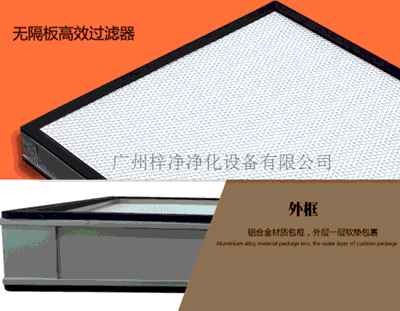 無隔板高效過濾器對于≥0.3μm顆粒的過濾效率在99.99%以上,高效和超高效空氣過濾器均用于潔凈室末端,外框可選擇鋁合金框、鍍鋅框、木框或不銹鋼外框等。