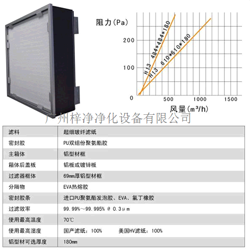 2、過(guò)濾效率:H13-H14,H13:99.97-99.99%@0.3μm、H14:99.995-99.999%@0.3μm(MPPS);