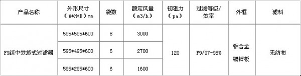F9級袋式中效過濾器特點(diǎn):