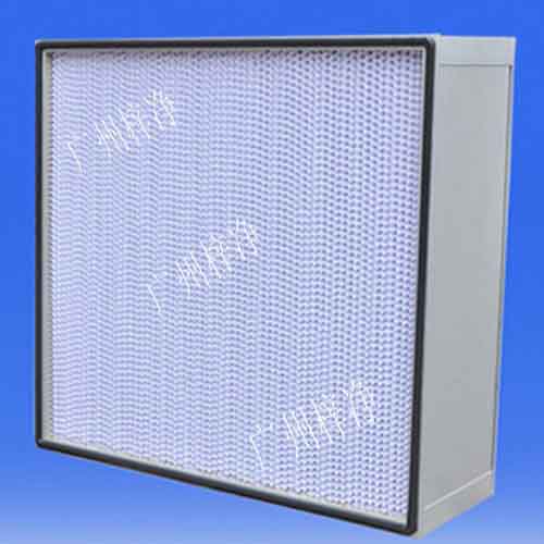 亞高效過濾器采用超細玻璃纖維濾紙或聚丙烯濾紙為濾材,經密摺而成。密摺的濾紙由紙隔板或鋁箔隔板做成的小插件間隔,保持流暢通道,外框為鍍鋅板、不銹鋼板或鋁合金型材,用新型聚氨酯密封膠密封。
