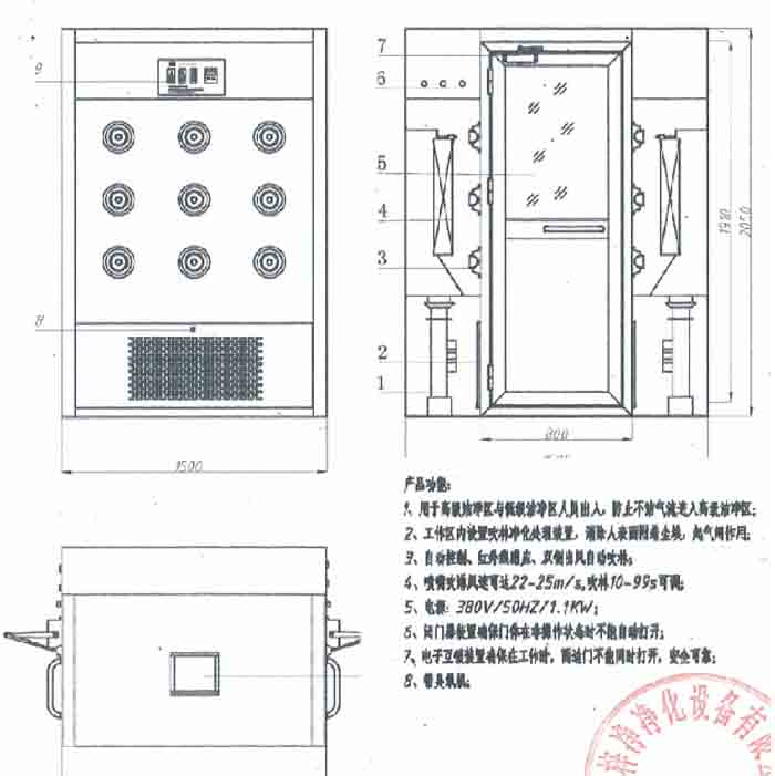 17. 電源:380V 50Hz(可為客戶非標私人定制110V,460V,60Hz等非標電壓頻率風淋室)