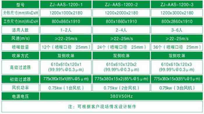 “梓凈”牌氧殺菌風淋室規格尺寸標準及技術參數: