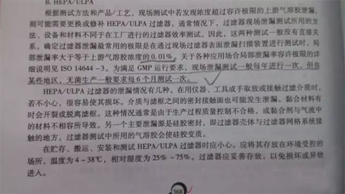 《藥品GMP指南》對檢測周期的規定:高效過濾器泄漏測試一般每年進行一次,但無菌生產區每6個月測試一次。