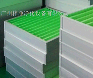 過濾材料是以折疊形式裝入高強度模切硬紙板內,迎風面積增大。流入的空氣中的塵埃粒子被過濾材料有效阻擋在褶與褶之間。潔凈空氣從另一面均勻流出,因此氣流通過過濾器是平緩和均勻的。視過濾材料不同,它所阻擋的粒徑從0.5μm到5μm而不同,過濾效率也不同 !